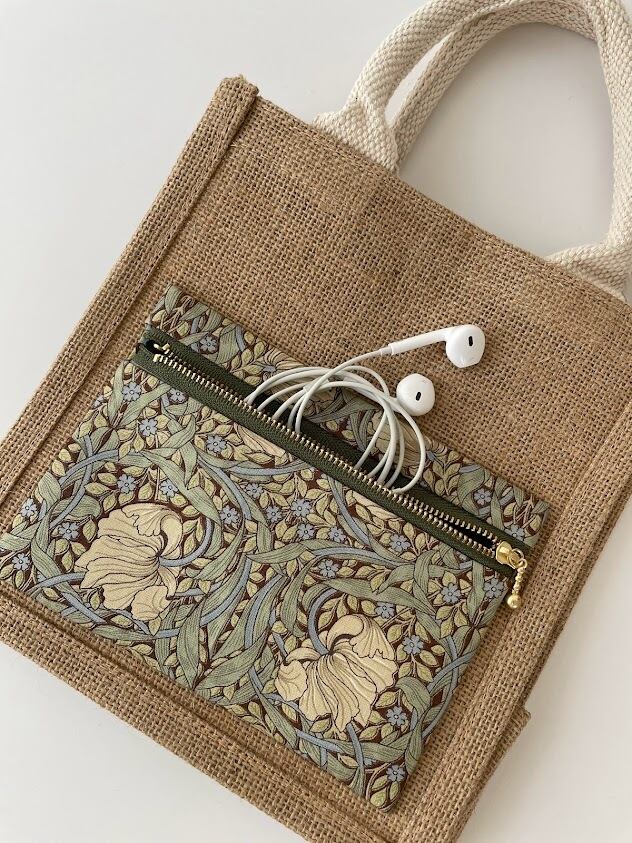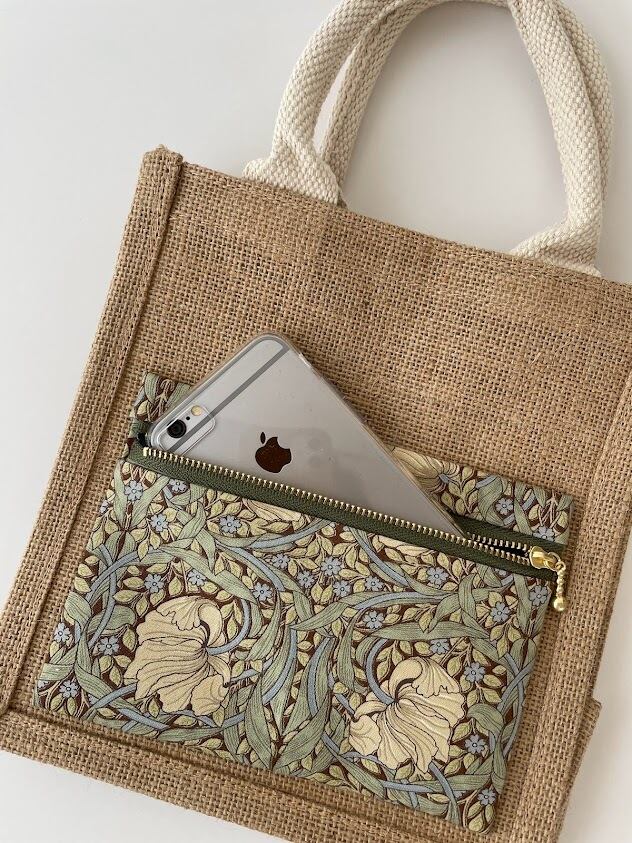 ↑こちらのサンプル写真は一番小さなA6サイズのジュートバッグに16㎝のファスナーを合わせたものです。